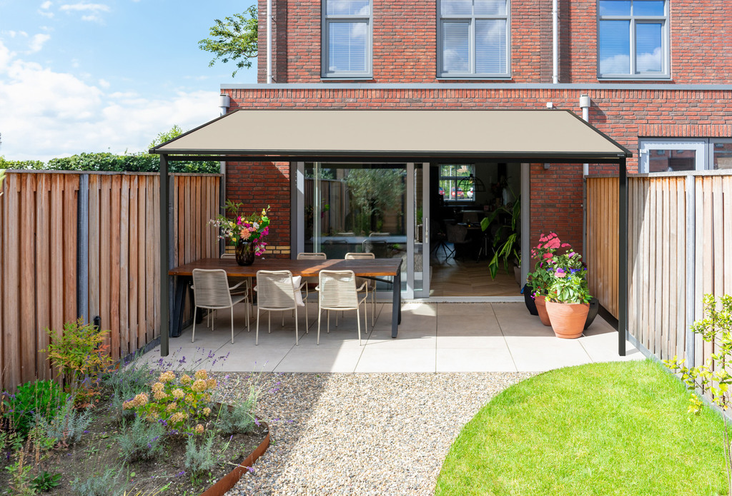Die V620 eignet sich für extra breite Veranden, Wintergärten und Terrassenüberdachungen. Dieser Sonnenschutz ist in bis zu 1200 cm Breite erhältlich, ohne dabei an Stabilität einzubüßen. Der maximale Ausfall beträgt 500 cm.